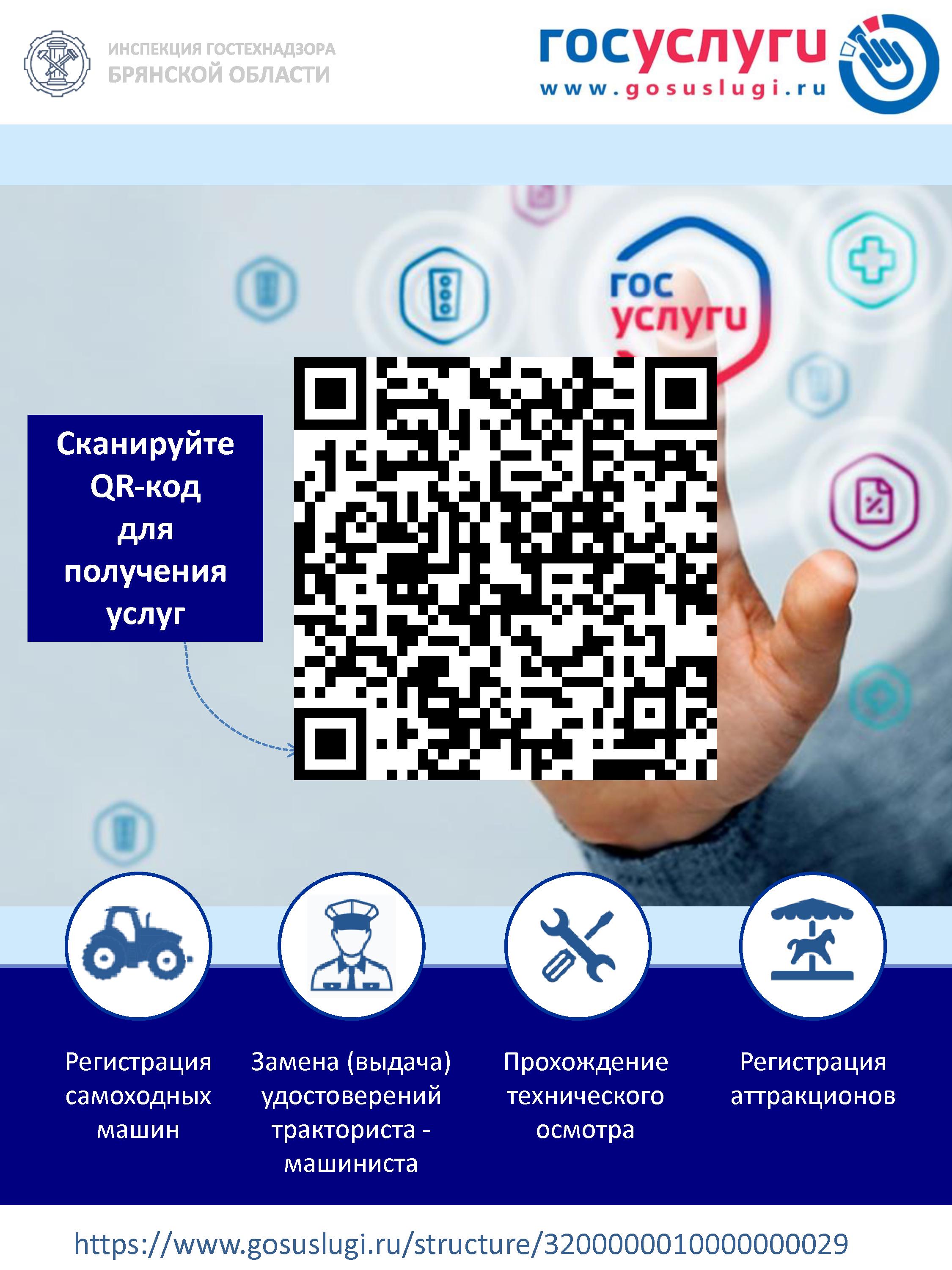 Инспекция гостехнадзора Брянской области доводит до сведения граждан о возможности получения услуг с помощью ЕПГУ